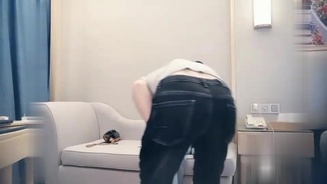 特色酒店偷拍气质长美女穿着男友买的性感内裤和网友酒店私会,女的不脱内裤说:我怕你睡着睡着操我,你出来,别动!