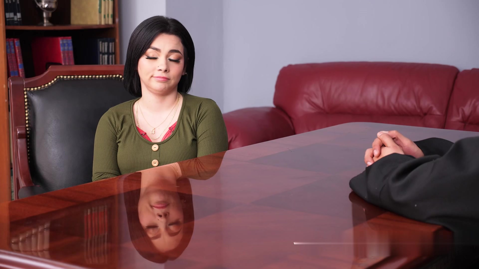 刚丧偶就穿着惹火的情趣内衣引诱牧师在沙发上疯狂做爱的风骚性感小寡妇。