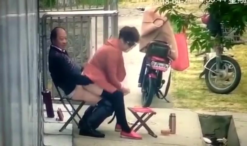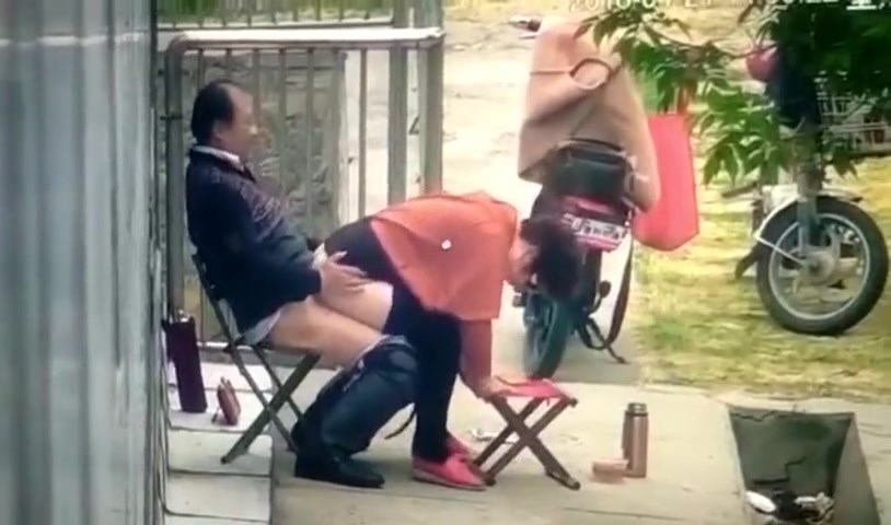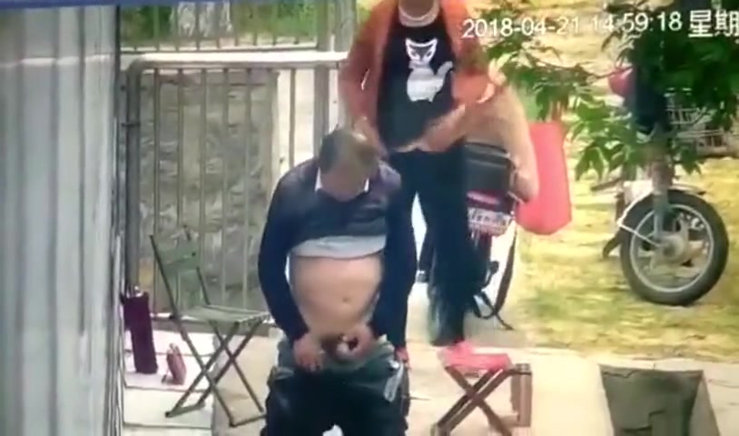 大爷和姘头大白天在门前老汉推车