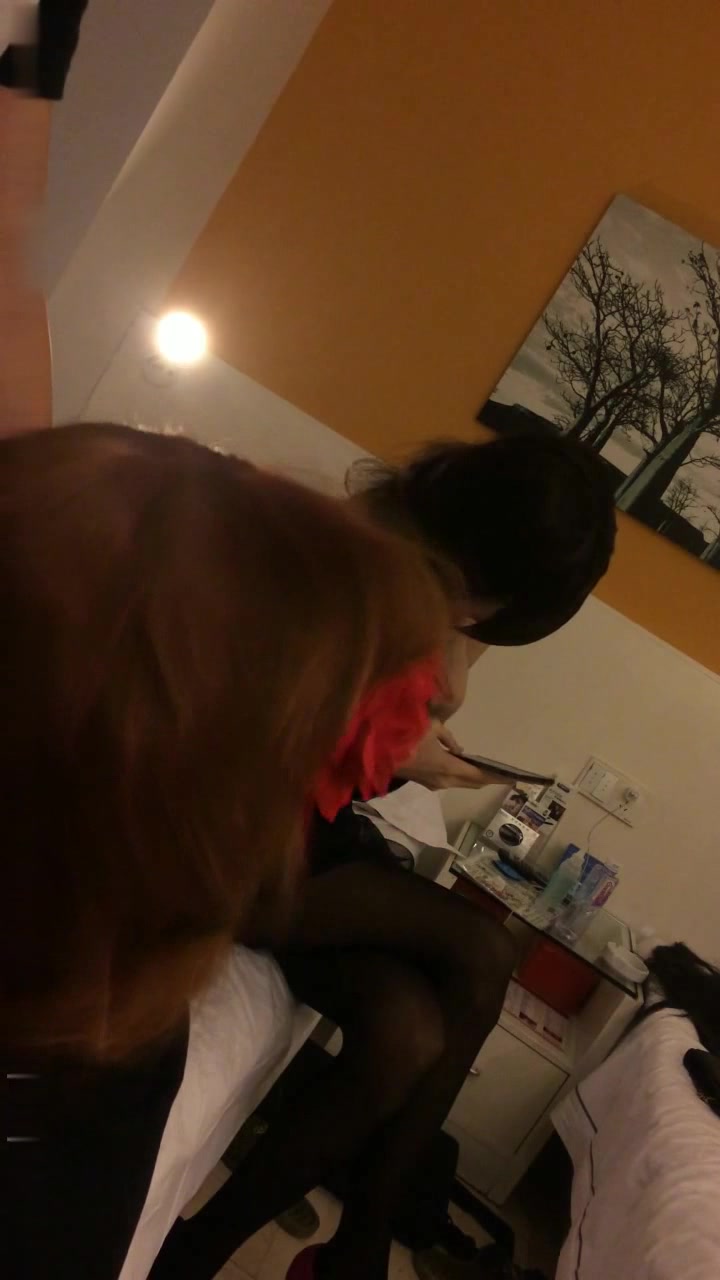 办公室浅蓝短衬衫黑裙黑丝高跟