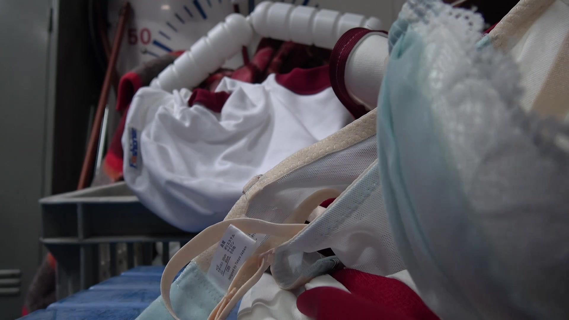 人妻在阳台上晾晒红色内衣 暗示丈夫不在家2